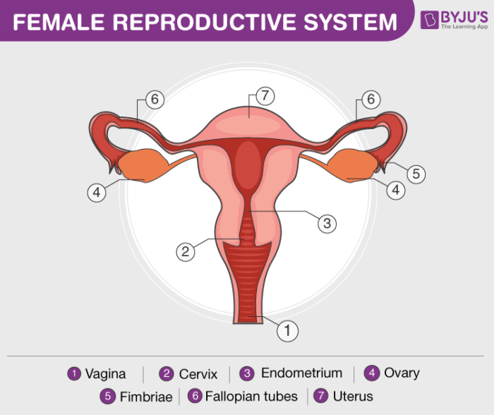 The female reproductive system is active before, during and after fertilization as well. It consists of the following parts: